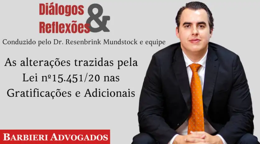 Neste vídeo, os advogados do escritório Barbieri trazem na VI Edição de Diálogos e Reflexões, a explanação e exemplificação relativas às alterações trazidas pela Lei nº15.451/20 nas Gratificações e Adicionais.
