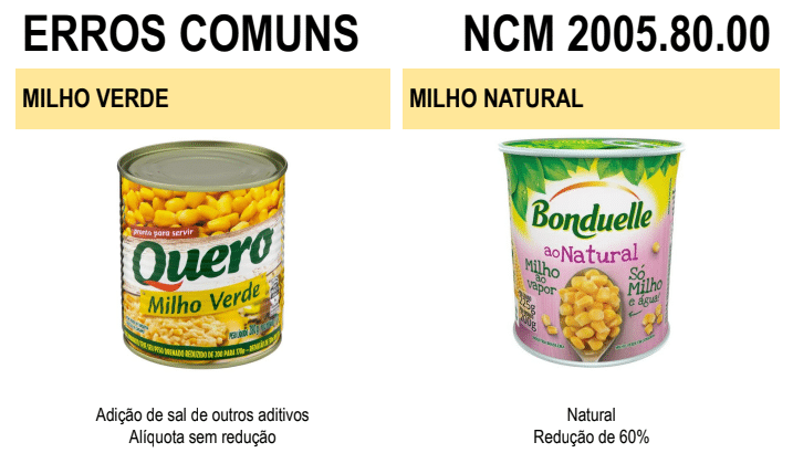 Entretanto, quando o mesmo milho verde recebe adição de sal ou outros aditivos durante o processamento, perde sua característica de produto natural e deve ser reclassificado, perdendo consequentemente o benefício da redução tributária. Esta diferença na classificação pode representar um aumento significativo na carga tributária do produto, impactando diretamente sua competitividade no mercado.
