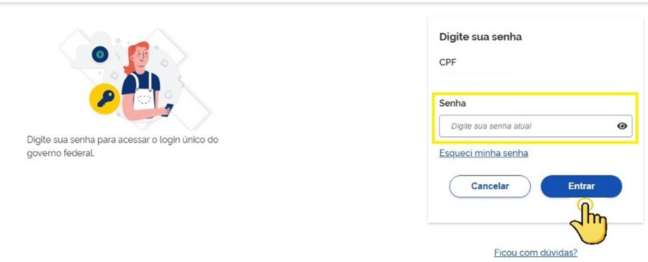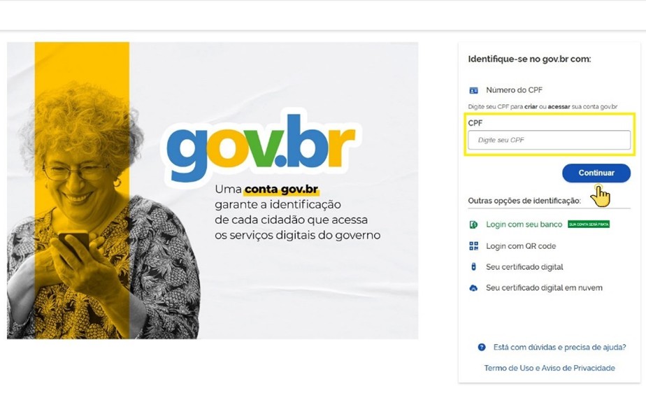 - Faça login com CPF e senha do gov.br (crie conta se for primeiro acesso)