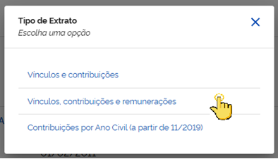 Extrato completo: Inclui vínculos, períodos e valores mensais das remunerações. Esta é a versão recomendada.